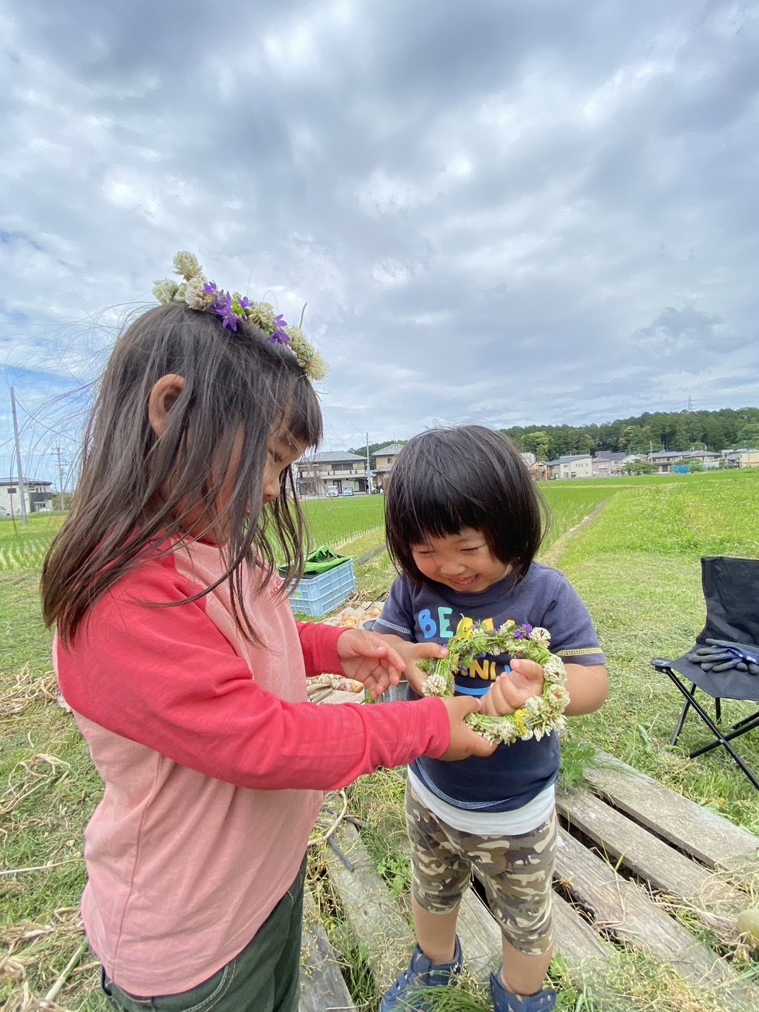 「子どもが小さくて作業ができない…」と思っている方も多いですが、実際に体験農園に来ている子供は、2歳〜小学生の子供が一番多いです。子どもと一緒に楽しんでいる方もたくさんいます。我が家に関しては、生後1ヶ月から畑で過ごしています。2〜3歳くらいだと一緒に作業に参加する姿もよく見かけますし、年長〜小学生くらいになってくると子供同士で虫取りしたり、花飾りを作ったり、泥団子を作ったり、ゲームをしたり…と畑の中で楽しく遊んでいます!実際に、「親が作業している間、子どもは畑の中を走り回って遊んでいる」という光景は、体験農園では当たり前にみることができます。